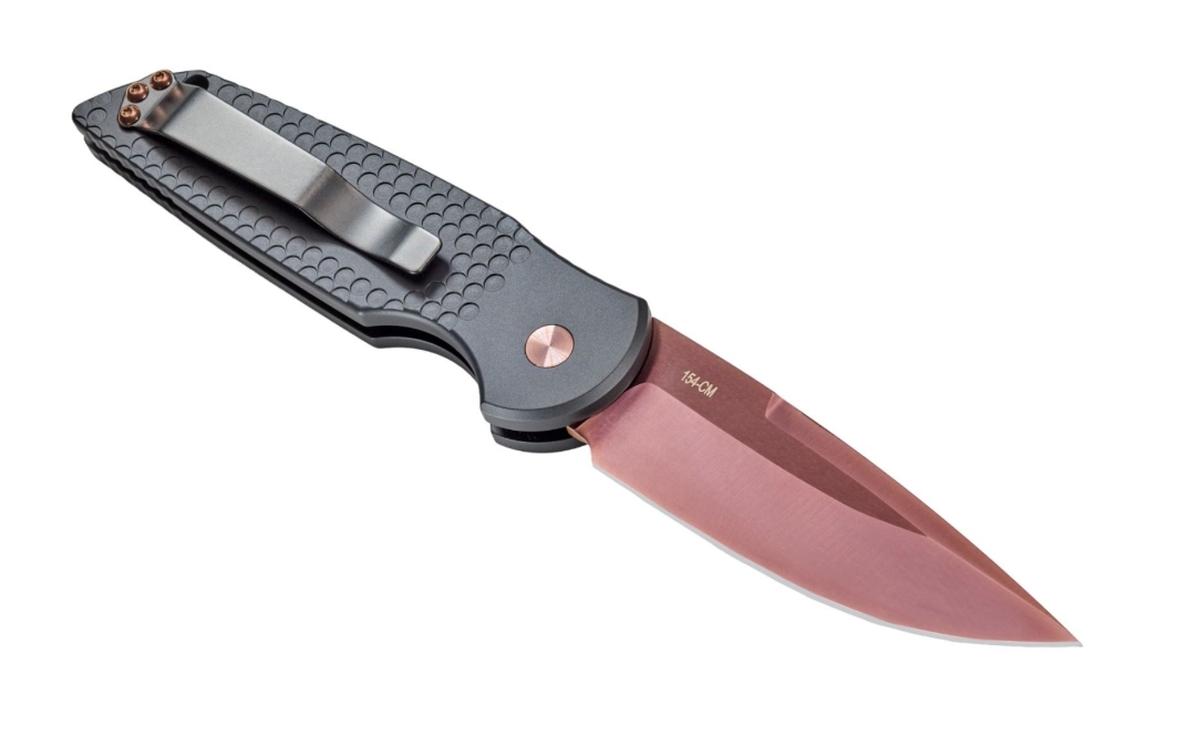 The blade is crafted from premium 154-CM steel and finished in a striking Copper Rose Gold coating, offering exceptional edge retention and corrosion resistance with a bold, refined aesthetic. The warm metallic tone contrasts beautifully against the rugged green handle, giving this TR-3 a look that is both sophisticated and purpose-built. Fast, smooth, and decisively reliable, it pairs Pro-Tech’s legendary automatic action with unmistakable Nighthawk styling—equally suited for serious daily carry or a standout addition to a collection.