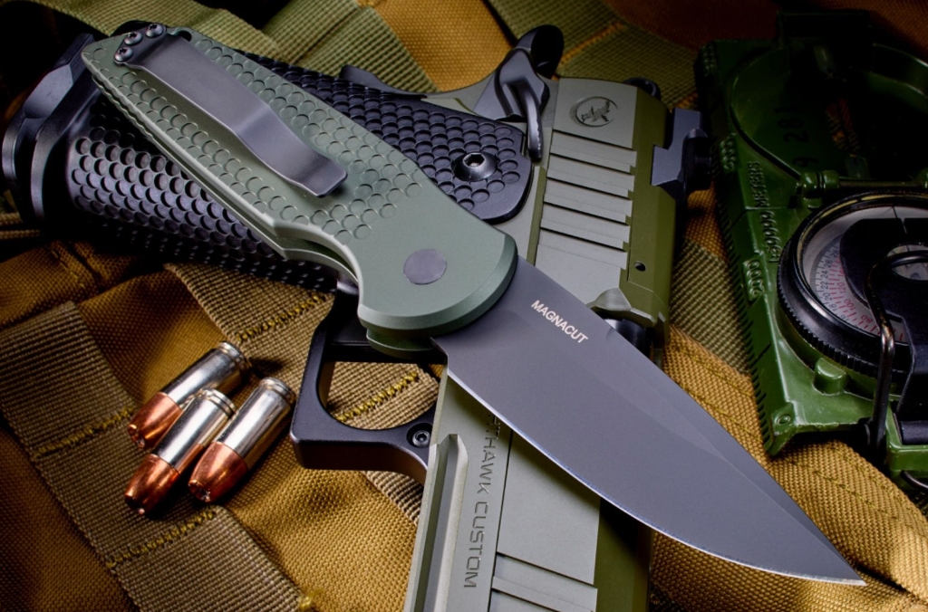 The Nighthawk TR-3 OD Green is a precision-built automatic folder created through the collaboration of Nighthawk Custom and Pro-Tech Knives. Drawing inspiration from the modern styling of our double stack pistols, this exclusive TR-3 variant showcases a durable OD Green anodized frame finish, offering a rugged yet refined appearance. Its 3.5” blade is forged from premium MagnaCut stainless steel and coated in a DLC finish, providing superior edge retention, corrosion resistance, and a distinctive look that pairs seamlessly with the green frame. Accented with black DLC-coated hardware and a black lip pearl release button, the knife delivers both tactical edge and sophisticated detail.
